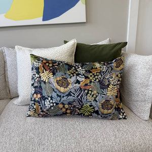 This cushion makes a beautiful statement on its own, or pair with plains and patterns in complementary colours.