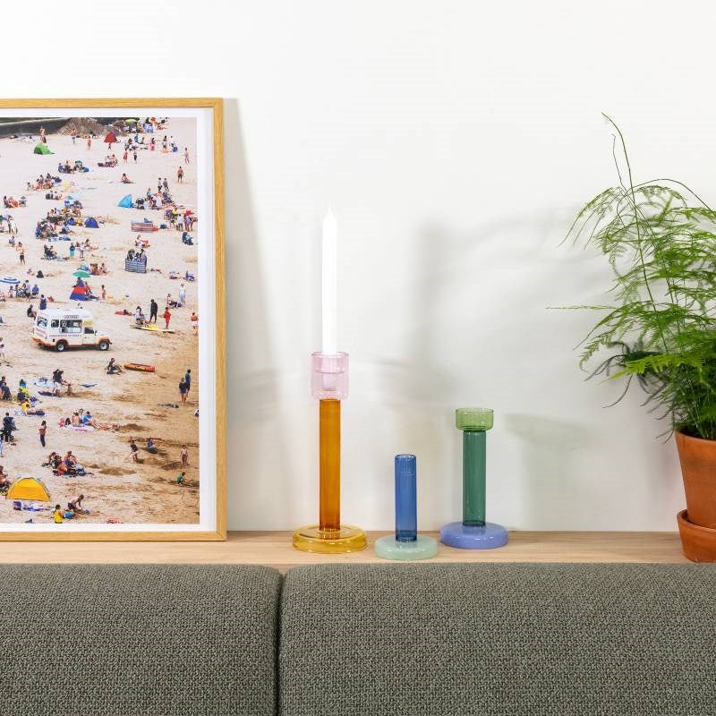 The Bole Small Candle Holder in blue and aqua is part of designer Lex Pott’s playful collection that reimagines the classic candleholder. Its rounded form and transparent layers of colour create a soft, atmospheric glow, whether you’re using a tealight or a dinner candle. On its own, it adds a modern pop of colour to your space, and when styled with other Bole holders, it becomes part of a striking, sculptural landscape.