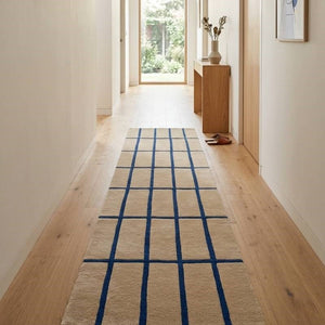 Bring a touch of stylish structure to your space with this luxurious Tiiliskivi wool rug runner. The bright blue and neutral cut and loop pile will add a splash of colour and texture to your home. The Tiiliskivi (brick) pattern was designed by Marimekko’s founder Armi Ratia in 1952. The pattern reflects her belief in the simple beauty of everyday life.