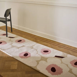 Timeless Unikko is here to grace your home in a luxurious wool rug runner. This iconic design will bring a finishing touch to your space. With a beige/pink flower and constrasting stems, this is a perfect mix of neutrals and subtle colour.