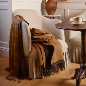 The Herringbone Check Camel & Chocolate 100% Merino Throw offers a rich combination of texture and warmth. Featuring a refined herringbone check in camel and chocolate tones, this throw brings depth, comfort, and timeless appeal to your living space.