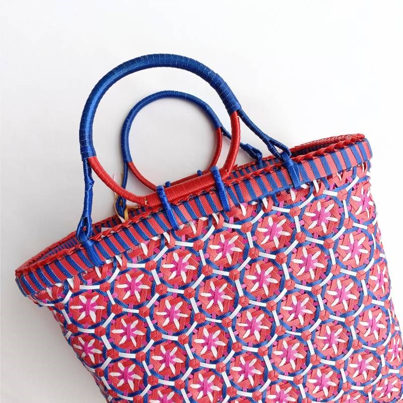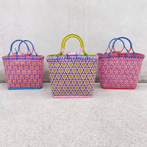 Each Pali basket is individually handwoven in a remote village in Myanmar, from new and recycled plastic pallet strapping. Small Passionfruit baskets are a great every day handbag size. Perfect for shopping, going to the beach or taking lunch to work.