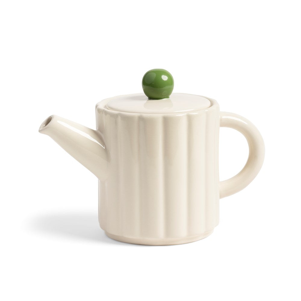 Add a touch of fun to your tea time with the cute Tube teapot, featuring a white body and green accent.